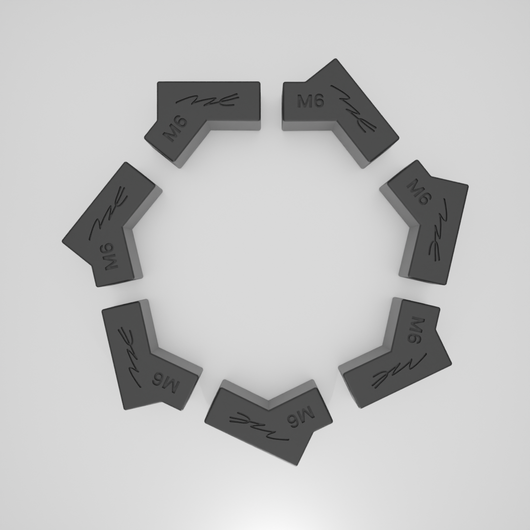 The corner brackets are 3D printed in carbon fibre reinforced composite plastic with precisely aligned brass threaded inserts. Set at 89°, the corners naturally pull tight to give you perfect, clean joints, with as little fiddling as possible.