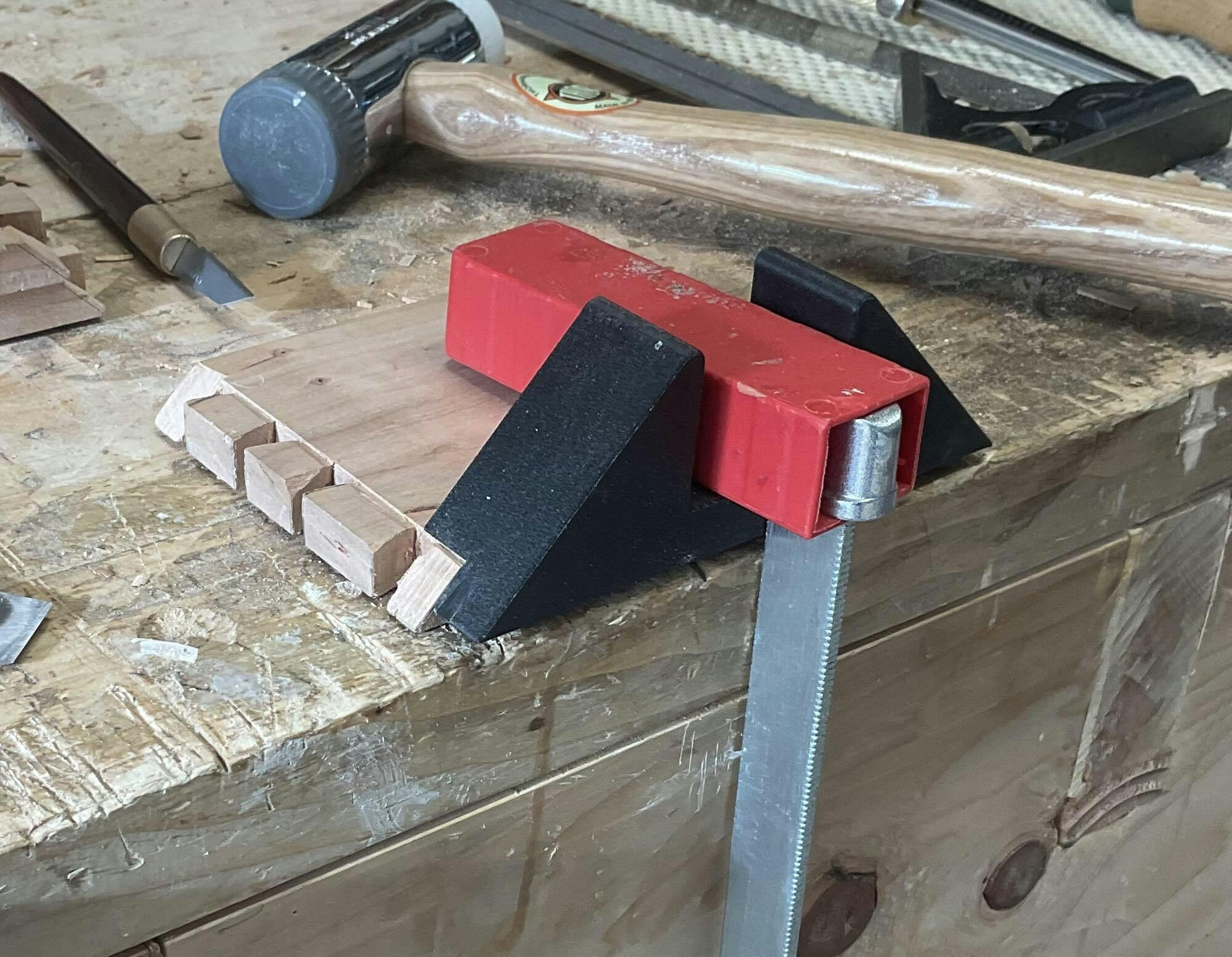 Made from Carbon Fibre reinforced material, these blocks are designed to make chiselling mitred dovetails a breeze. All you need is a clamp and a sharp chisel.